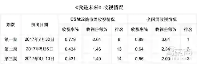 相较于跑男、爸爸去哪儿等其他综艺节目来说,《我是未来》并说不上“全民大火”的地步,我们先从收视率来看。