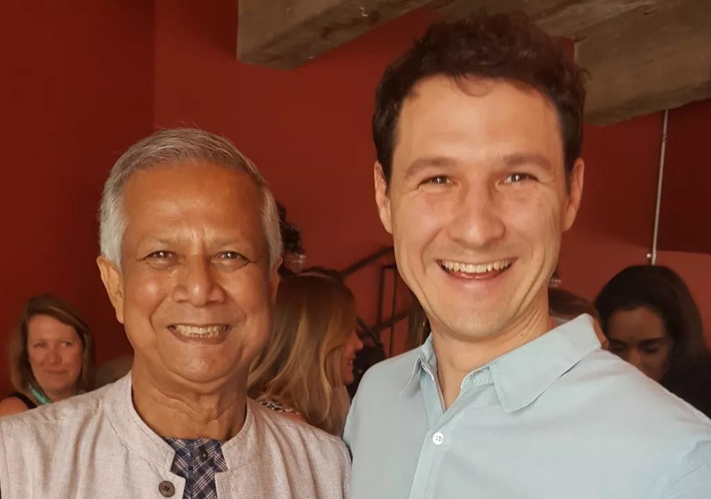 Jed McCaleb(右)与诺贝尔和平奖获得者穆罕默德·尤努斯(Muhammad Yunus)