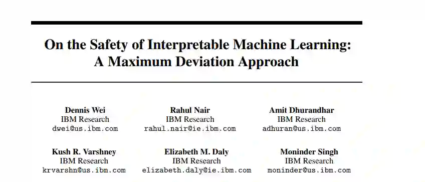 可解释的机器学习最近引起了人们的极大兴趣。我们将安全性作为激增背后的一个关键动机,并使可解释性和安全性之间的关系更加定量。为了评估安全性,我们引入了最大偏差的概念,通过优化问题找到监督学习模型与被视为安全的参考模型的最大偏差。然后,我们将展示可解释性如何促进这种安全评估。对于决策树模型、广义线性模型和加性模型,可以准确有效地计算最大偏差。对于树集合,它被认为是不可解释的,离散优化技术仍然可以提供信息边界。对于更广泛的分段Lipschitz函数,我们利用多臂强盗文献来表明可解释性在最大偏差上产生更紧密的(遗憾)界限。我们提出了案例研究,包括一个抵押贷款批准,以说明我们的方法和关于模型的见解,可能从偏差最大化。