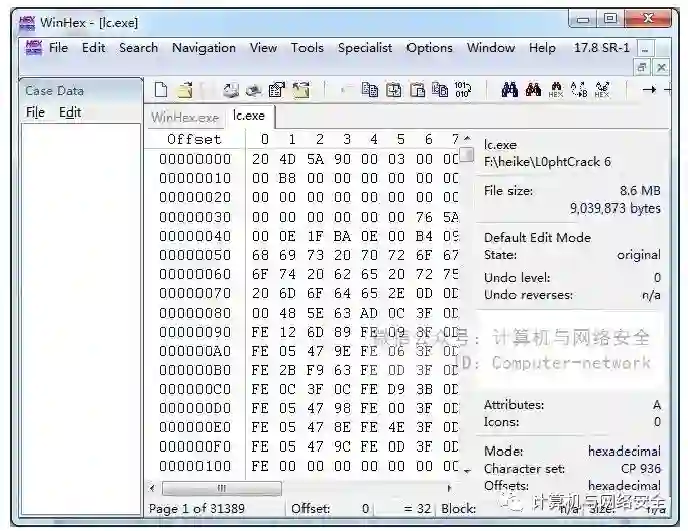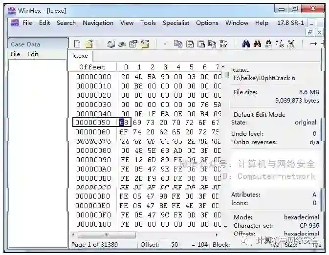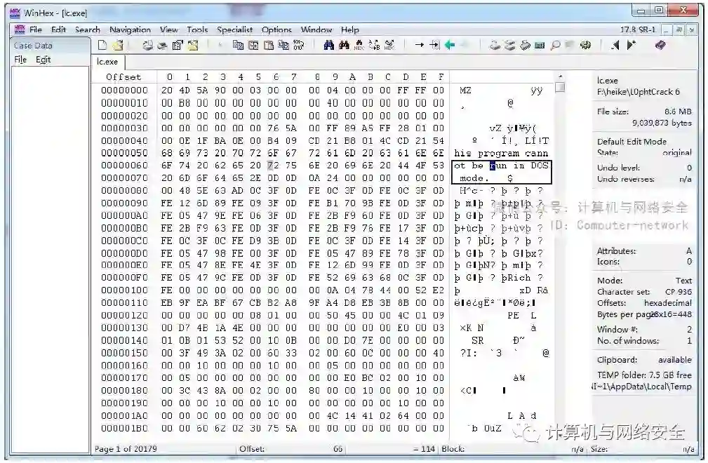 图26 在WinHex主窗口中查看应用程序对应的十六进制代码