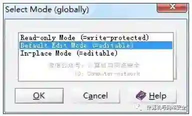 步骤03:选择Options(选项)→Edit Mode(编辑模式)菜单项,即可打开Select Mode(选择模式)对话框,如图23所示。由于WinHex默认是写保护方式的,这里将编辑模式修改为Default Edit Mode(=deitale)(默认的编辑模式(=可编写))选项。