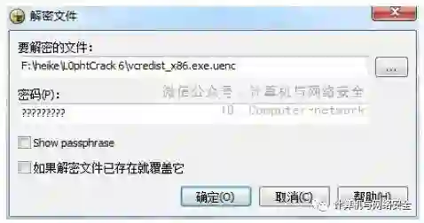 步骤21:同理,如果想解密文件,则在UltraEdit主窗口中选择“文件”→“加密”→“解密文件”菜单项,即可打开“解密文件”对话框,如图20所示。在其中选择要解密的文件并输入设置的密码,单击“确定”按钮,即可进行解密操作。
