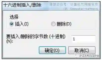 步骤05:在UltraEdit编辑工具中还可以插入或删除十六进制数据。在UltraEdit主窗口中选择“编辑”→“十六进制功能”→“十六进制插入/删除”菜单项,即可打开“十六进制插入/删除”对话框,如图5所示。