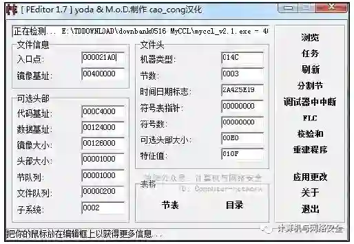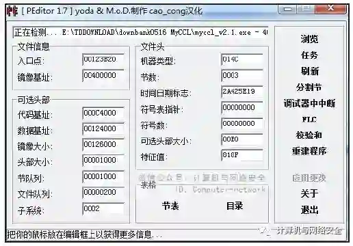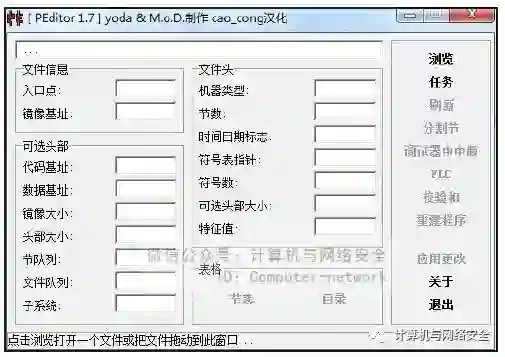 PEditor是一款PE文件编辑工具,有转存进程、在SoftICE中插入中断、编辑PE文件的导入表、节表、重建校验和重建程序等功能。与其他PE编辑工具相比,PEditor可把所有的功能都集中在主窗口中,从而方便修改PE文件。使用PEditor编辑PE文件的操作步骤如下。
