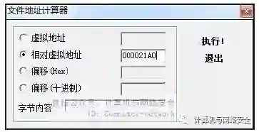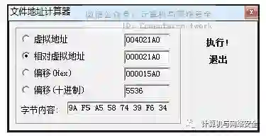 步骤08:单击“执行”按钮,即可计算出输入的“相对虚拟地址”对应的虚拟地址、十六进制偏移、十进制偏移以及字节内容,如图50所示。