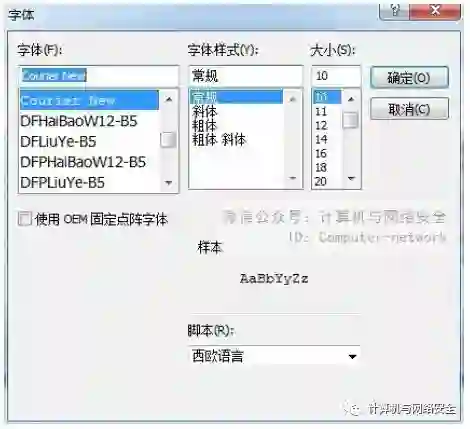 步骤09:UltraEdit软件支持在Windows系统里安装的所有字体,其中包括中文Windows和其他外挂字体。如果要选择显示字体,在UltraEdit主窗口中选择“视图”→“设置字体”菜单项,即可打开“字体”对话框,如图8所示。