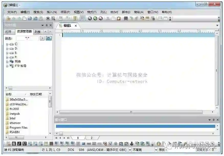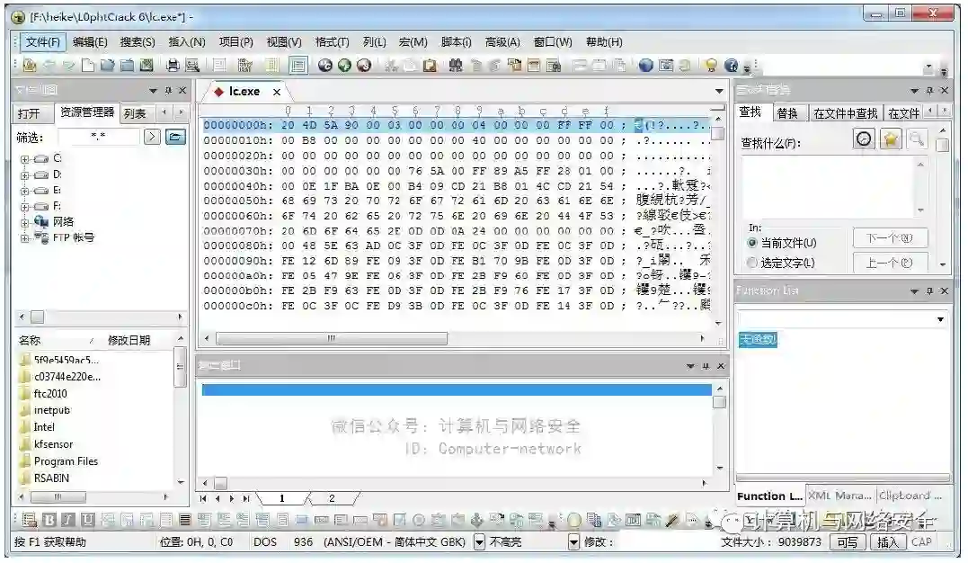 步骤01:下载并安装UltraEdit,双击该工具的快捷图标,即可打开UltraEdit主窗口。在UltraEdit工具中可以查看各种应用软件的十六进制编码,如图1所示。