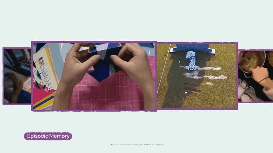 以第一人称视觉为中心的视频记录了相机佩戴者的日常生活,如果用这些视频去训练AI,AI就能学会通过检索过去以第一人称视觉为中心的视频中的关键时刻来扩展你的个人记忆。