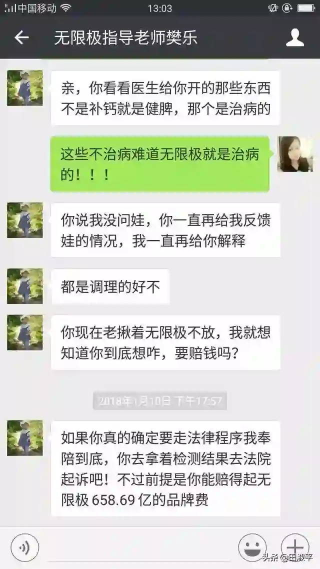最后,孩子被诊断出诸多问题后,前述无限极指导老师樊乐失联,而拨打无限极总部电话,工作人员告诉她要继续相信公司,公司会解决问题,但不要报警。