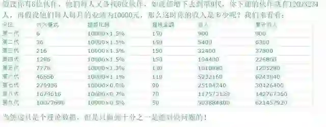 在公司分红方面,无限极规定了“六六模式”的拉人头方式。也就是说,哪怕当月一分钱产品都没有卖出去,只靠发展下线人头,就能拿到收入。发展1296人,月提成收入就可达到22.68万元。