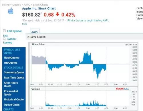 苹果2017秋季新品发布会无太大惊喜 股价下跌0.42%