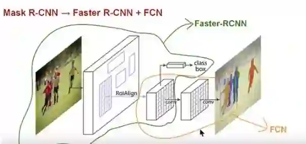 Faster R-CNN 对每个候选对象都有两个输出,一个是分类标签,另一个是对象边框。而 Mask-RCNN 就是在 Faster R-CNN 的两个输出的基础上,添加一个掩码的输出,该掩码是一个表示对象在边框中像素的二元掩码。但是这个新添加的掩码输出与原来的分类和边框输出不同,它需要物体更加精细的空间布局和位置信息。因此,Mask R-CNN 需要使用「全卷积神经网络」(FCN)。