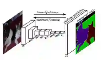 「全卷积神经网络」是「语义分割」中十分常见的算法,它利用了不同区块的卷积和池化层,首先将一张图片解压至它原本大小的三十二分之一,然后在这种粒度水平下进行预测分类,最后使用向上采样和反卷积层将图片还原到原来的尺寸。