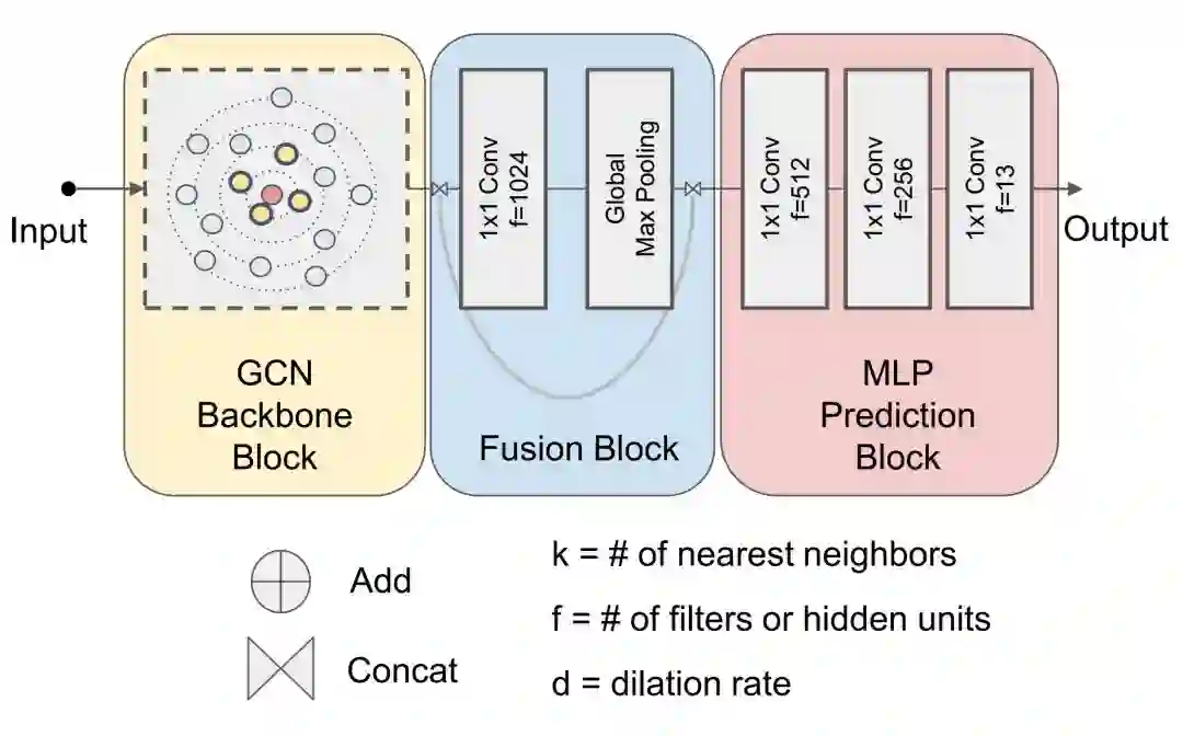 其中主干网络用于抽取输入数据的特征。在实验过程中研究人员利用了 ResGCN 和 DenseGCN 来构建主干网络;随后利用与 PointNet 和 EdgeConv 相同的方法构建了融合模块,对全局和局部特征进行了有效融合;最后利用多层感知机模块对融合后的特征进行处理,针对特定的任务进行处理。