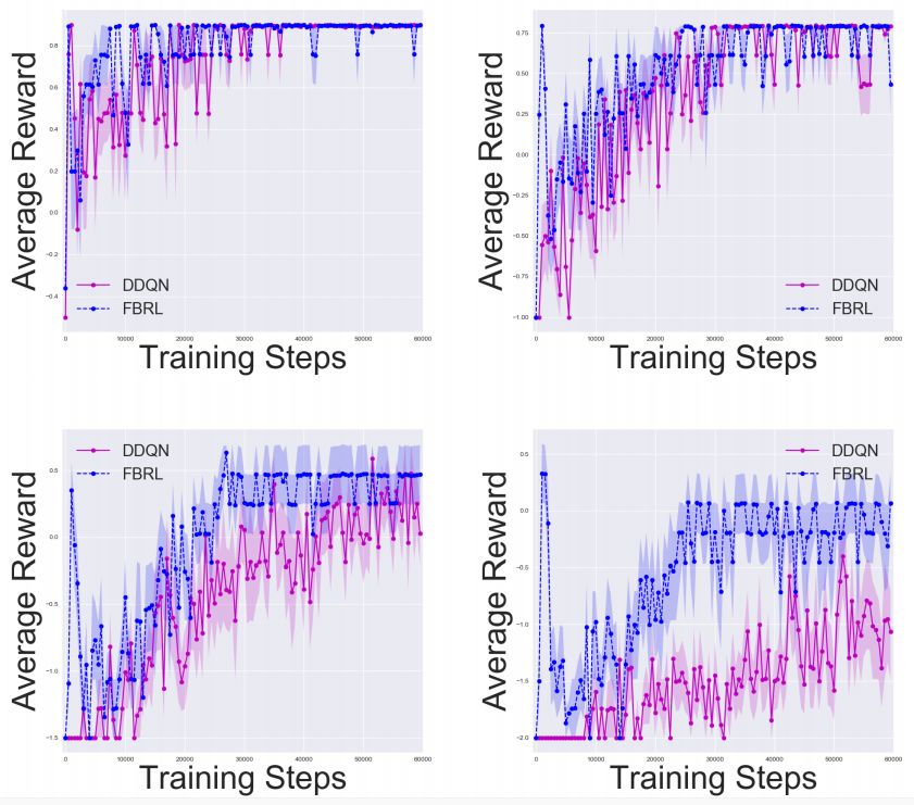 本文中,我们介绍了正向-反向强化学习(Forward-Backward Reinforcement Learning,FBRL),它引入反向归纳,使我们的智能体能够及时进行逆向推理。通过一个迭代过程,我们既从开始位置正向进行了探索,也从目标开始进行了反向探索。
