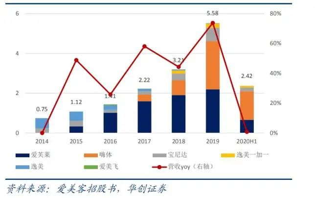 当前哪款产品卖的最好呢?爱芙莱(1000至3000元/ml)与嗨体(600至1000元/ml)销量最好,这两大产品贡献了2019年总销量的约60%,占总营收的近83%,高端产品宝尼达(6000至15000元/ml,这是当前市面最贵的注射玻尿酸)销量较差。