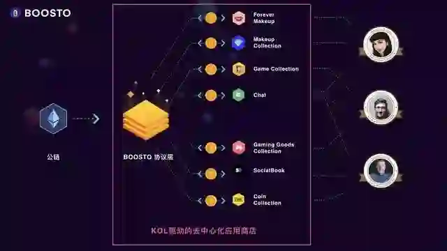 BOOSTO,作为是新一代的区块链分布式应用程序商店,对标苹果应用商店和安卓市场,赋予KOL和开发者力量与自由。