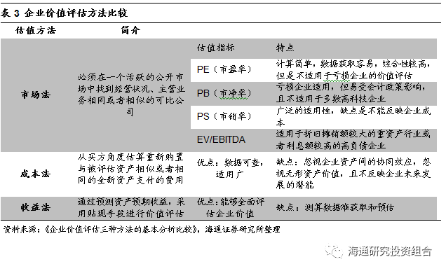 3)应用型公司:PE法。此类公司产品技术壁垒高,但是相对成熟,我们建议应用PE估值方法。