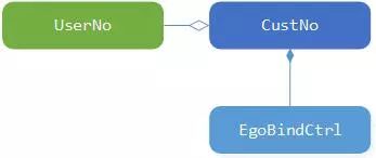 采用面向对象的编程,合理的组织对象之间的关联、聚合、组合关系,能够更好的遵循 SOLID 原则,能够更好管理对象。例如易购账号(CustNo)和易付宝账号(UserNo)绑定关系,对于易付宝来讲一个账号要么建立绑定关系要么没有建立绑定关系。如果建立绑定关系了,一个易购账号一定对应一个易付宝账号,那么当我们在易付宝会员侧建立 CustNo 领域对象时,和 UserNo 对象之间就是聚合的关系。当一个绑定关系建立时,该绑定关系对应的绑定关系控制器(EgoBindCtrl)也同时创建,但是一个 EgoBindCtrl 只对应一个绑定关系,如果绑定关系不存在了,那么 EgoBindCtrl 也没有存在的必要了,此时 CustNo 对象和 EgoBindCtrl 对象之间就是组合的关系,如下图: