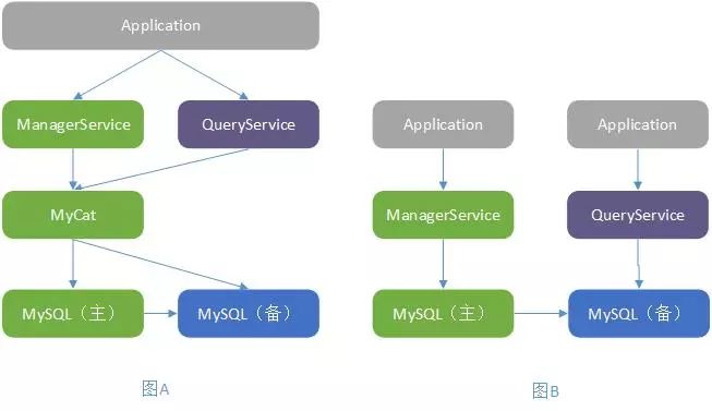 读写分离本身是一个比较朴素的设计,在系统中我们常用到缓存读写分离,数据库读写分离,那么服务读写分离应该如何设计呢?在系统架构上,通常采用水平拆分来提高程序的伸缩性,采用垂直拆分来提高程序的可扩展性。垂直拆分应当是按业务来拆分,下图 B 按读写分离进行垂直拆分打破了业务内聚属性,会增加后期维护难度。