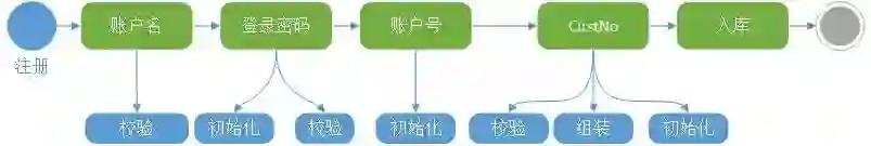 精通业务,需要业务专家,对于互联网产品,产品经理就是业务专家。技术人员作为重构发起方,需要不断和产品经理讨论业务,梳理出业务流程中隐藏的数据信息。例如会员系统的开户服务,产品经理给出的业务流程如下: