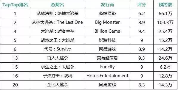 而事实上,在游戏社区 TapTap 的九月以及十月的新游预约榜单上,有超过十款这样的游戏几乎都是「换皮」之后的《绝地求生:大逃杀》。在更早时候,一些根本不是这种游戏,但宣传时也使用类似截图的「钓鱼游戏」,甚至也在短时间内有过不错的下载量,玩家们对于这样的「换皮」似乎也很认可,这种现象在手游这些年的发展中十分罕见。