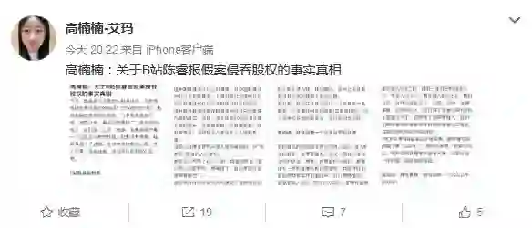@网易科技【前B站游戏运营负责人高楠楠:陈睿报假案吞150万股份】前B站游戏运营负责人高楠楠今日发文称,B站董事长陈睿报假案使其成为犯罪嫌疑人,并导致陈睿无偿拿到享游公司或无偿收回150万B站股份。
