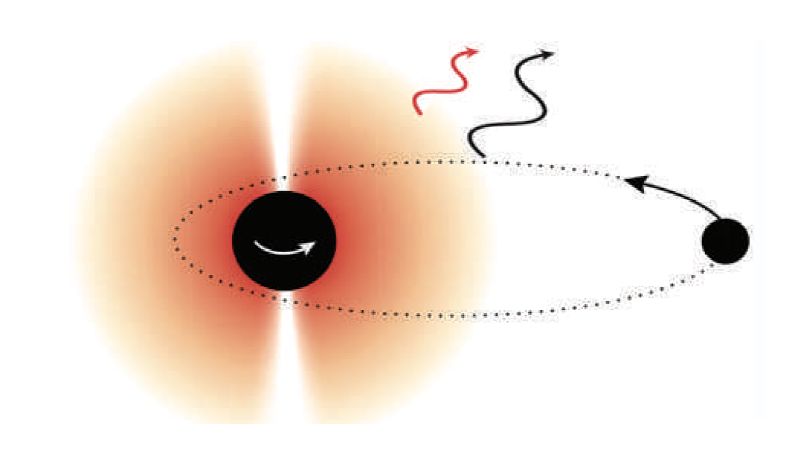 黑洞的自转能可用以激发其附近的辐射,即所谓的“超辐射”效应。这种辐射为玻色子,一些模型给出其静质量在10-10—10-20 eV范围内。在吸积黑洞发出辐射的背景中找寻这种超辐射几乎是不可能的。但是,若黑洞围绕另一黑洞发生并合,在满足某种引力共振条件时,玻色子云将迅速坍塌。当双黑洞的轨道频率与普朗克常数之积跟玻色子云的能级相当时,这种共振就会发生。玻色子云的行为类似于原子核外的电子云。黑洞并合时,玻色子云的迅速塌缩会影响引力波信号的谐波。