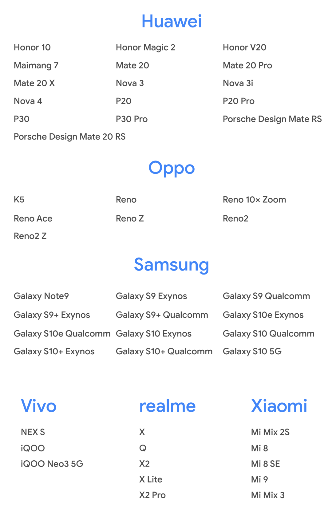 支持设备列表