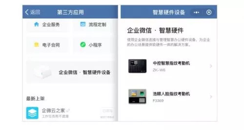 “企业微信”方面表示,目前,企业微信已经与考勤机等硬件的合作伙伴形成产品合作,优质的合作智慧硬件产品可以在企业微信中查看或者购买。此外,企业微信第三方应用市场上线“小程序”类目,软件服务商可通过小程序为企业提供功能与体验俱佳的办公应用。