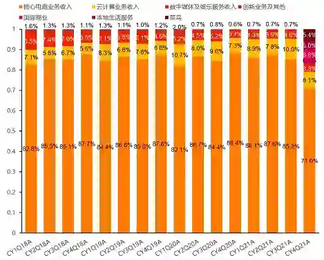 尽管观察期内,阿里在一些新业务方面的表现依然可圈可点,但就实际情况而言,国内电商业务仍然占据了阿里70%以上的营收占比,这意味着:短期内其他业务板块很难挑起阿里的增长重担,国内电商的表现仍然是其最为核心的基本盘。