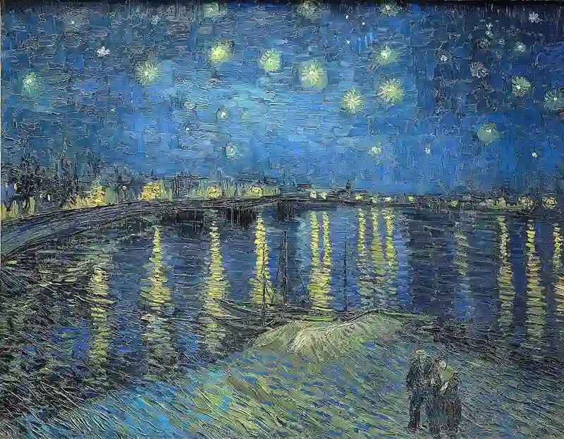 ►繁星点点的夜空罗讷河(Starry Night Sky Rhone River)by 梵高。