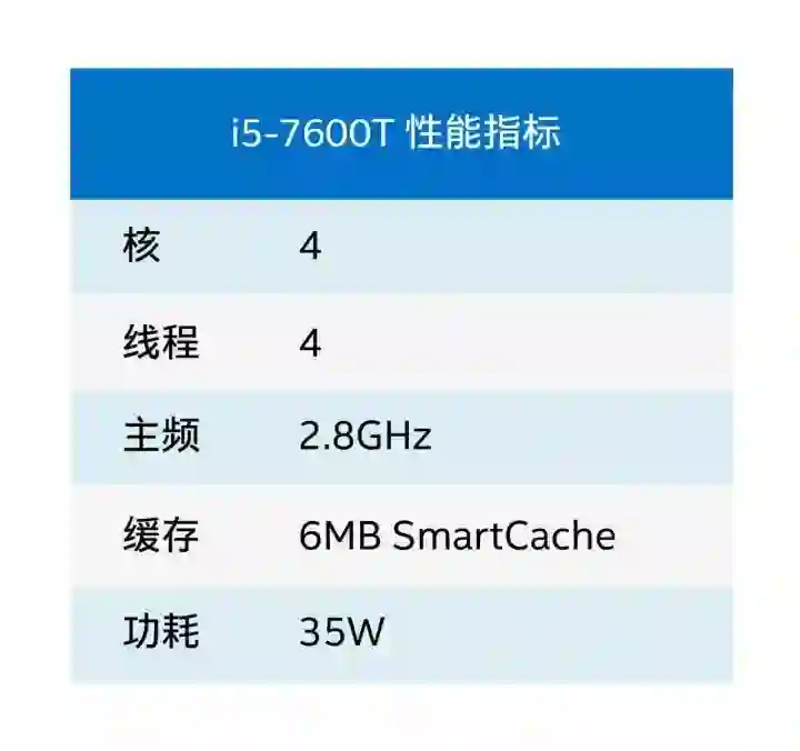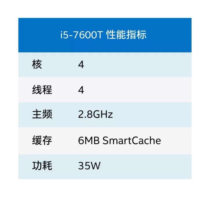 英特尔酷睿™是英特尔主流架构的CPU系列。与传统PC相比,在办公、游戏和视频处理方面都有了很大的性能提高,并且具有丰富的IO功能,提供了各种高速、低速接口。HERO平台搭载了一块第七代酷睿™i5-7600T , 具体性能指标参考如下: