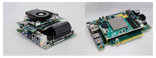 HERO平台全称为Heterogeneous Extensible Robot Open Platform,是英特尔中国研究院专为智能机器人(包括服务机器人、医疗机器人、自动驾驶汽车等)打造的一套低功耗、高性能、体积小的异构系统平台方案。在此方案中,CPU作为控制中心, 与FPGA和其他专用加速器芯片(如Movidius的VPU)搭配,能够提供高效的性能。整套HERO硬件系统采用了英特尔酷睿™系列CPU,搭载英特尔Arria 10 GX系列1150型FPGA作为异构加速器。
