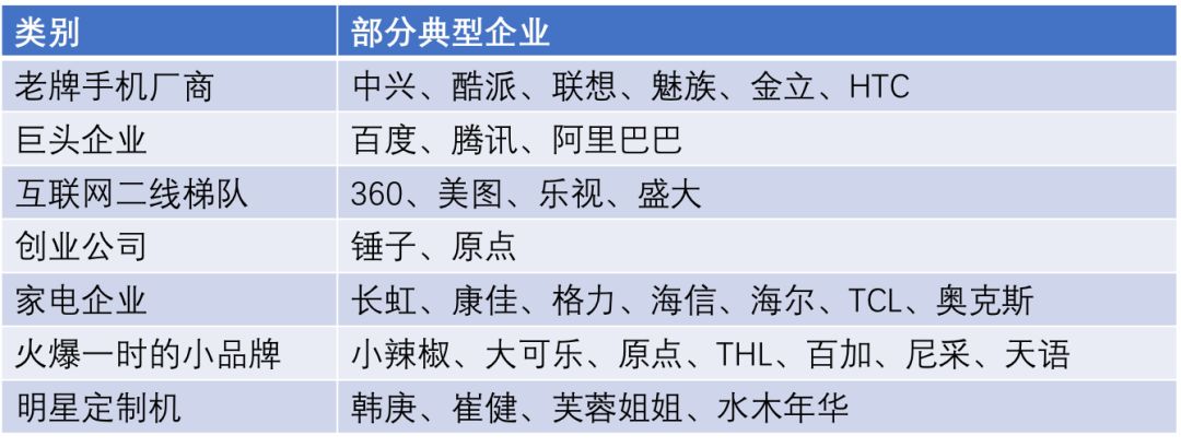 2011年前后,很多创业公司如锤子科技和原点手机也加入了智能手机的热潮,但他们或缺钱或缺乏供应链管理经验、或没有稳定的团队,最终走向了关闭/卖身之路