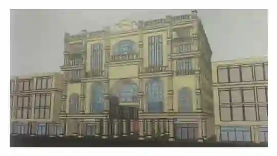大三元酒店位于广州长堤大马路,创建于 1919年。20世纪 20年代,大三元酒店与南园、西园、文园合称广州四大酒家,并位居榜首(图 12)。20 世纪 90 年代,随着长堤商业地位的下降,大三元酒店的生意也日渐萧条。1999年,大三元酒店改以经营快餐为主,2000年 4月因拖欠房租被迫关闭。2005年,大三元酒店的主楼被拆除。根据各方资料对大三元进行重新设计并建模,平面上将底层留出一段走道以分流行人和食客,为进入酒店的消费者提供一个舒适的过渡空间(图13)。