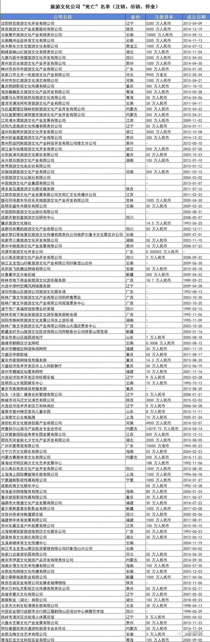 钛媒体在企业征信信息平台启信宝查询发现,据不完全统计,在旅游行业中涉及旅游文化、演艺相关业务的企业中,已经先后有110家左右的企业的营业状态为注销、吊销、停业状态。
