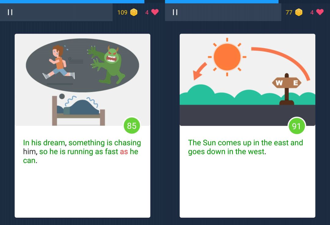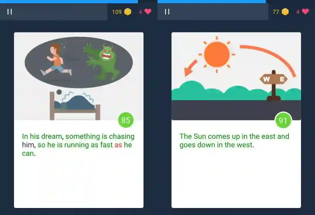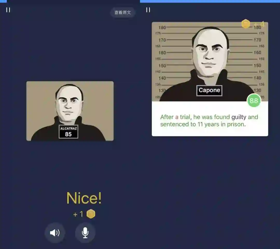 它的打分制度真的很严格,每答对一道题都会听到“噌”的一声,然后金币弹出来。