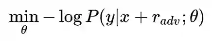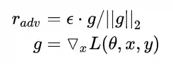 上面我们提到,Goodfellow 在 15 年的 ICLR [7] 中提出了 Fast Gradient Sign Method(FGSM),随后,在 17 年的 ICLR [9] 中,Goodfellow 对 FGSM 中计算扰动的部分做了一点简单的修改。假设输入的文本序列的 embedding vectors 为 x ,embedding 的扰动为: