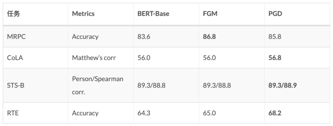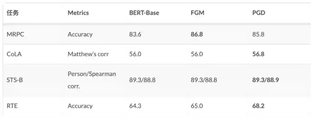 我们可以看到,对抗训练还是有效的,在 MRPC 和 RTE 任务上甚至可以提高三四个百分点。不过,根据我们使用的经验来看,是否有效有时也取决于数据集。毕竟:缘,妙不可言~