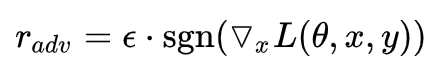上面我们提到,Goodfellow 在 15 年的 ICLR [7] 中提出了 Fast Gradient Sign Method(FGSM),随后,在 17 年的 ICLR [9] 中,Goodfellow 对 FGSM 中计算扰动的部分做了一点简单的修改。假设输入的文本序列的 embedding vectors  为 x ,embedding 的扰动为: