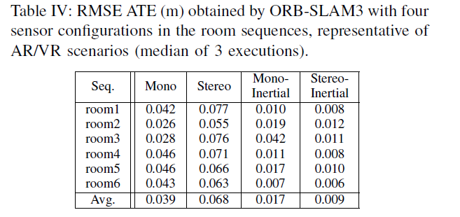我们的实验表明,在所有的传感器配置中,ORB_SLAM3与文献中可用的最佳系统一样鲁棒,并且更精确.值得注意的是,我们的立体惯性SLAM在EuRoC无人机上的平均精度为3.6cm,在TUM-VI数据集(AR/VR场景的一个典型设置)中,快速手持移动时的平均精度为9mm,最后,我们开源了代码.