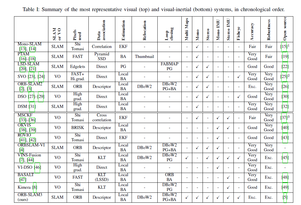 按时间顺序总结的最具代表性的视觉和视觉惯性系统
