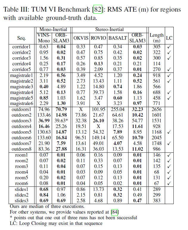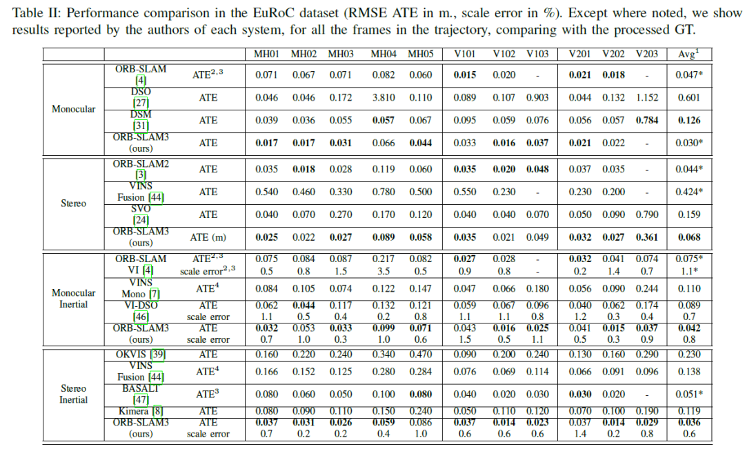 除特别说明外,我们展示了每个系统的作者报告的结果,对轨迹中的所有帧与处理后的GT进行比较.