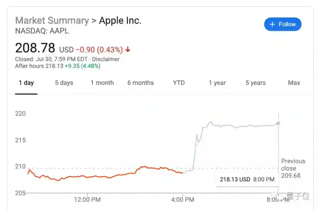 苹果似乎还是陷入了停滞状态,然而股价盘后却上涨了4.48%。