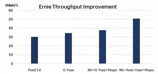 ERNIE 连续获得业界 SOTA 效果,离不开飞桨高性能分布式训练引擎提供的强大支撑。举例来说,在计算复杂度较高的深层 Multi Head Self-Attention 结构和成本较低的海量无监督的中文预训练语料,数据量和算力需求都是超乎想象的,不仅要求我们拥有大量高性能计算芯片,还要有非常强大的分布式训练能力。