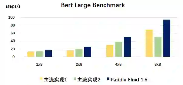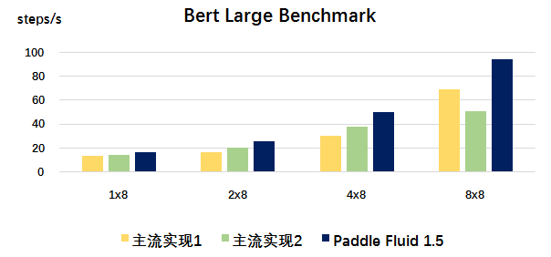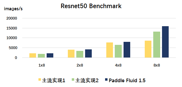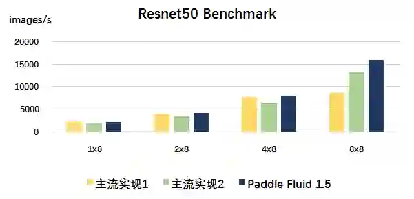 2019 年 7 月,飞桨发布了 Paddle Fluid 1.5 版本,面向通用 GPU 多机多卡场景的训练,为用户带来了更多新的特性,训练效率相比 1.4 版本有了大幅度提升。截至目前,飞桨团队在通信拓扑、通信内容、通信并发等方面实现了多项业界主流的加速技术,并形成灵活可配置的 Operator。开发者可以通过多种不同 Operator 的组合形成组合优势,全面提升并行训练的加速能力。