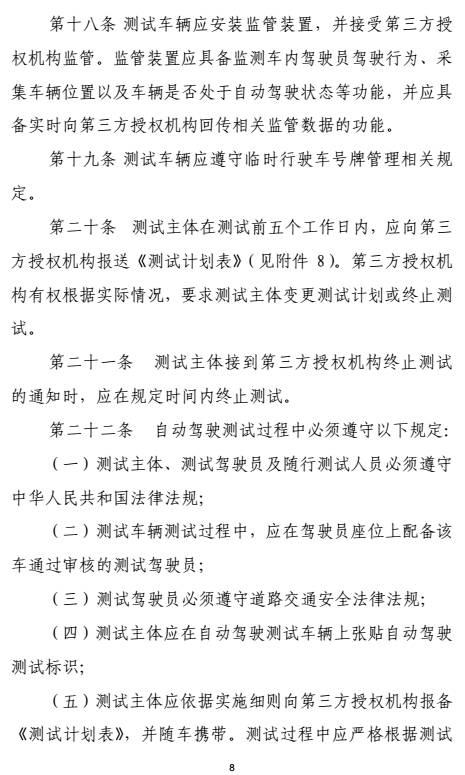 测试的车辆还必须安装监管装置,可以随时监测驾驶员的驾驶行为;