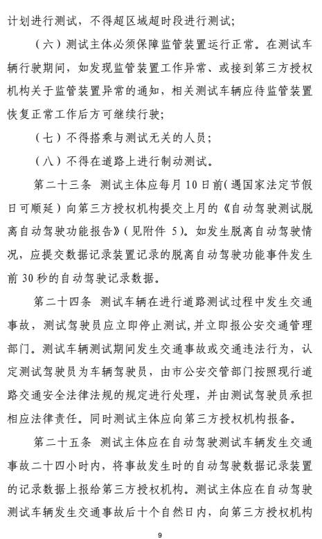指导意见和实施细则将明确上路测试的有关要求和管理流程,在保证道路交通安全的前提下积极、稳妥地推动自动驾驶车辆实际道路测试工作。
