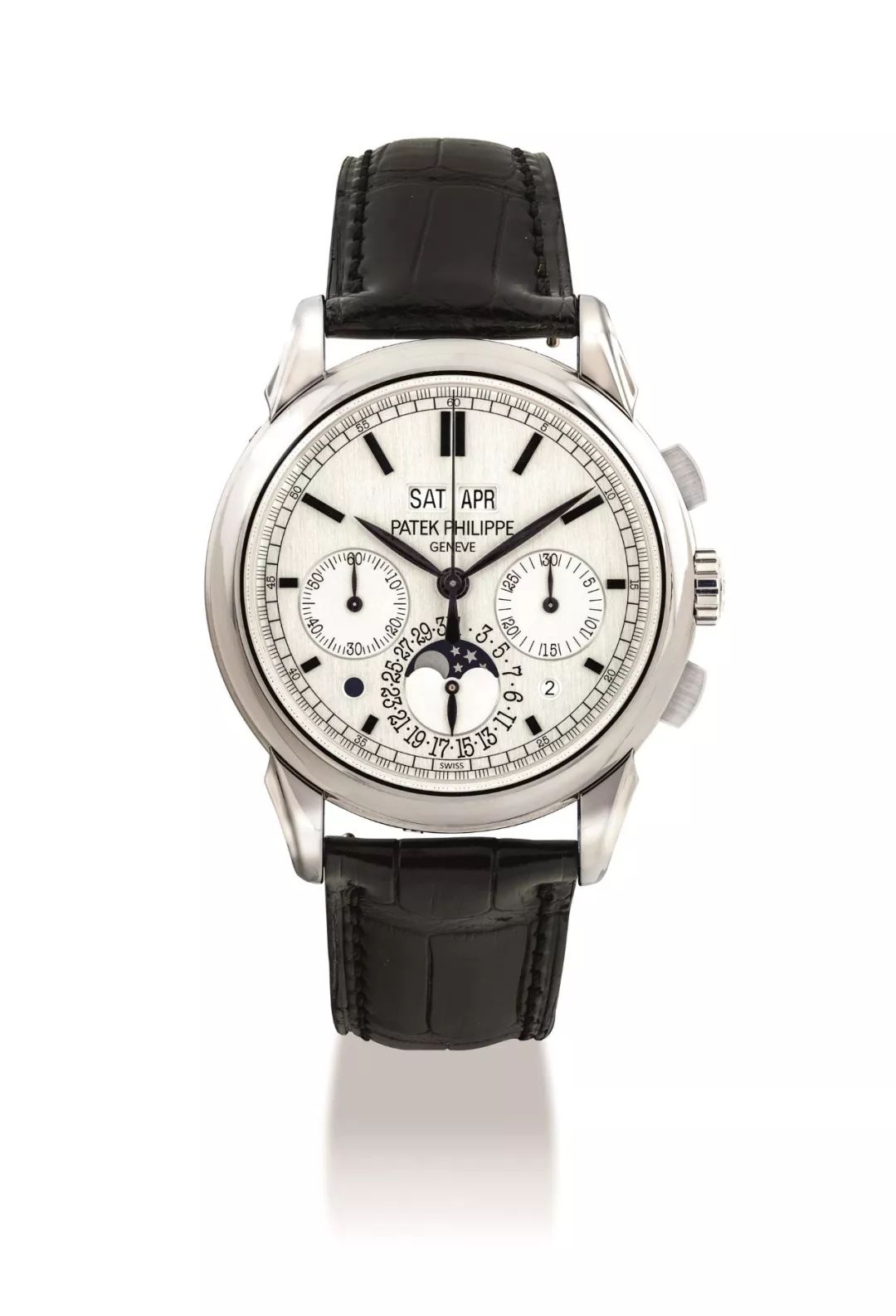 18k白金腕表,配万年历、计时功能、月相、闰年及日夜显示,型号5270
